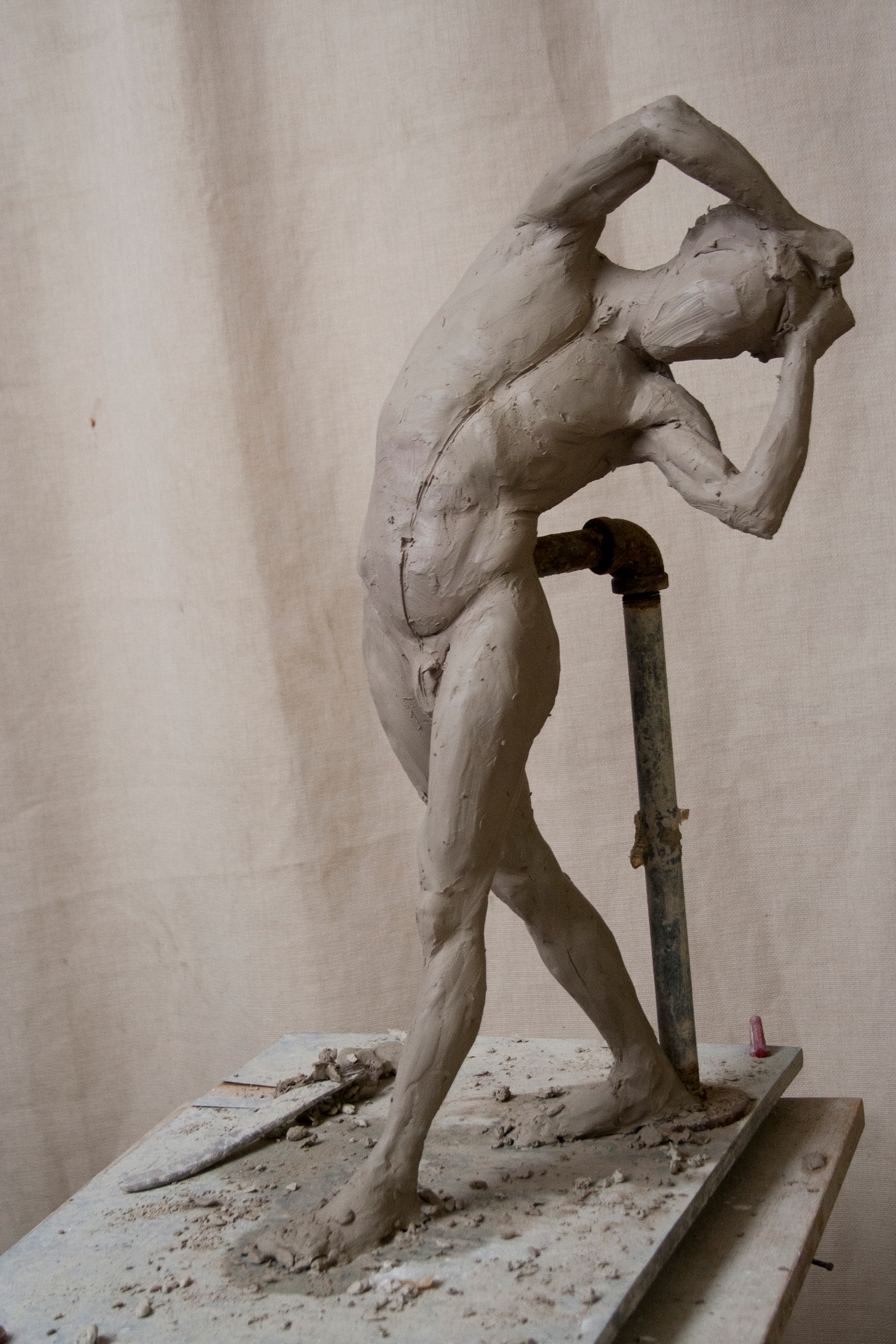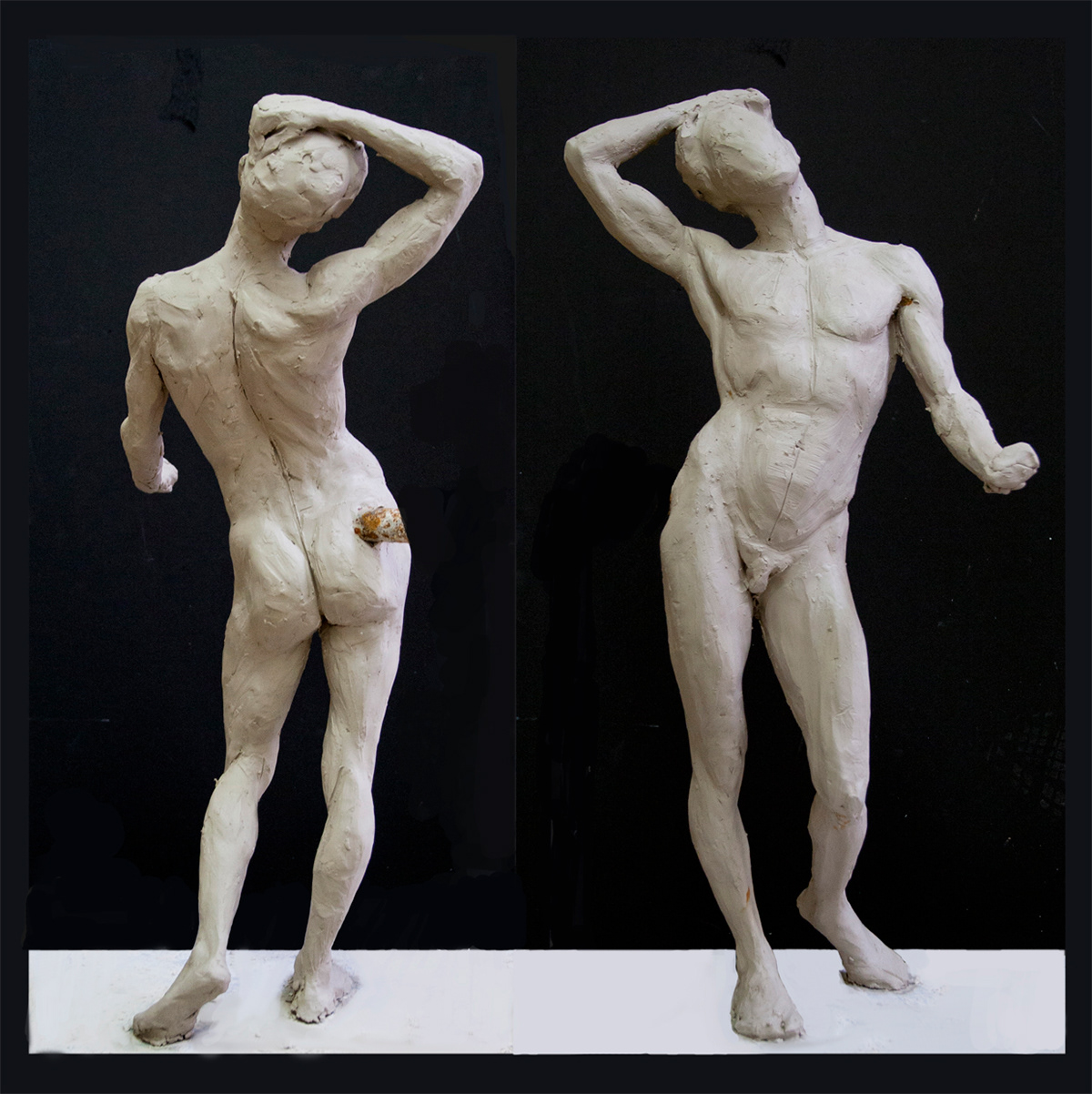 Below are some examples of gestural studies done in water-clay, 24 inches high. As a sculptor working from life always invigorates my mind to unexpected possibilities and hidden beauties brought by the spontaneity of life.