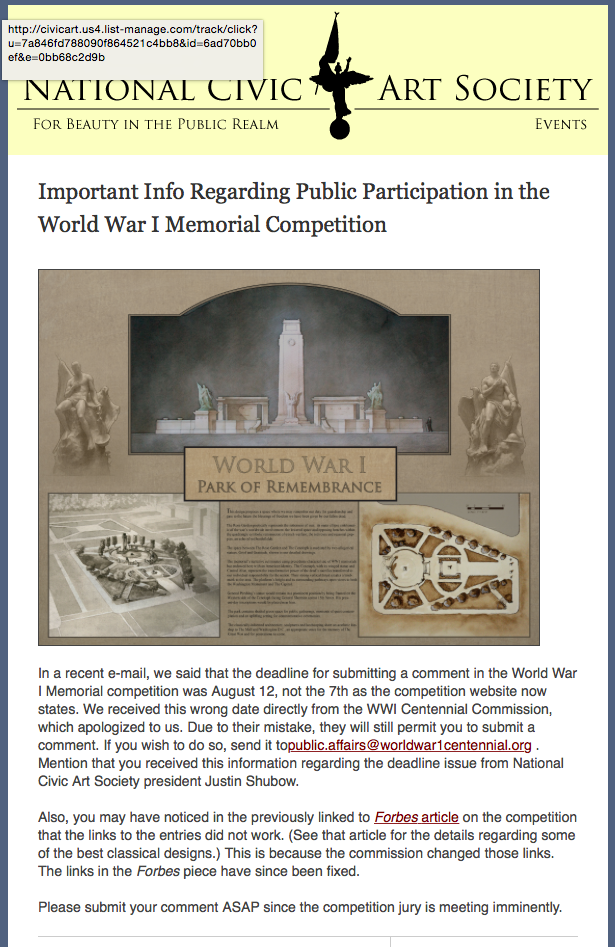 World War I Memorial Competition was held in 2015, proposing a new national monument at Pershing Park adjoining the White House in DC. Our team of artists, sculptors and architects came together in July to design the following entry. The competition received over 350 entries. Our classical design, a courtyard with Cenotaph and allegorical figures, received positive notice by critics including Justin Shubow, president of the National Civic Arts Society in his article in Forbes Magazine. You can read Mr. Shubow's article here: http://www.forbes.com/sites/justinshubow/2015/08/04/a-first-look-at-the-wwi-memorial-competition-the-best-entries-are-all-classical/3/#74b8d5acc592 Our team members included sculptor Joseph Brickey, architect Chad Brown, architect Clayton Vance, artist Stephen Haws, artist Corey Strange, designer Eli Baird, and architectural historian Michael Djordjevitch.